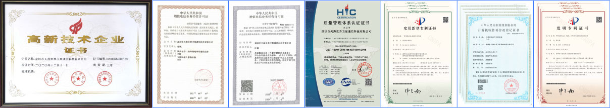 國家高新技術企業,持有工信部頒發的中國境內經營 VSAT通信服務許可證、ISP、ICP許可證,擁有52項衛星應用領域專利及軟件著作權、商標等知識產權。
